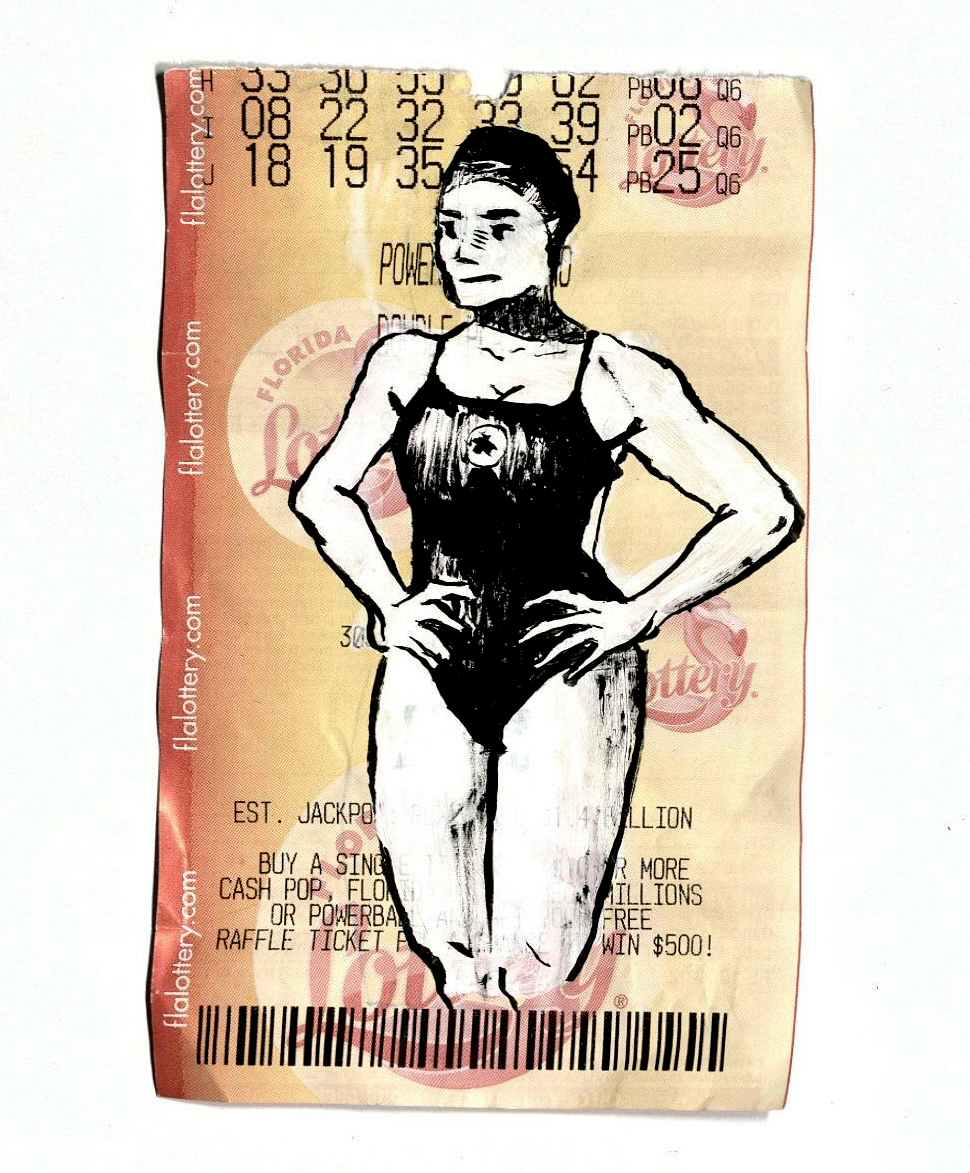 Acrylic and Ink on Florida Lottery TicketsDimensions Vary